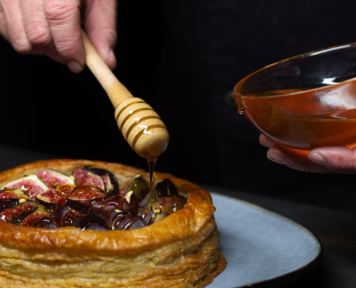 - Servir en versant un peu de miel chaud sur le dessus