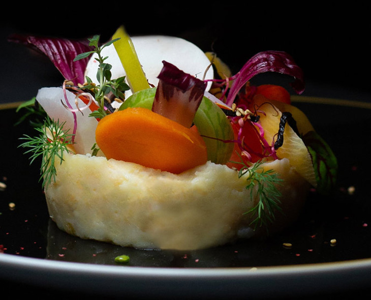 Ajouter progressivement un peu de polenta jusqu’à obtenir une liaison correspondant à un mélange un peu consistant